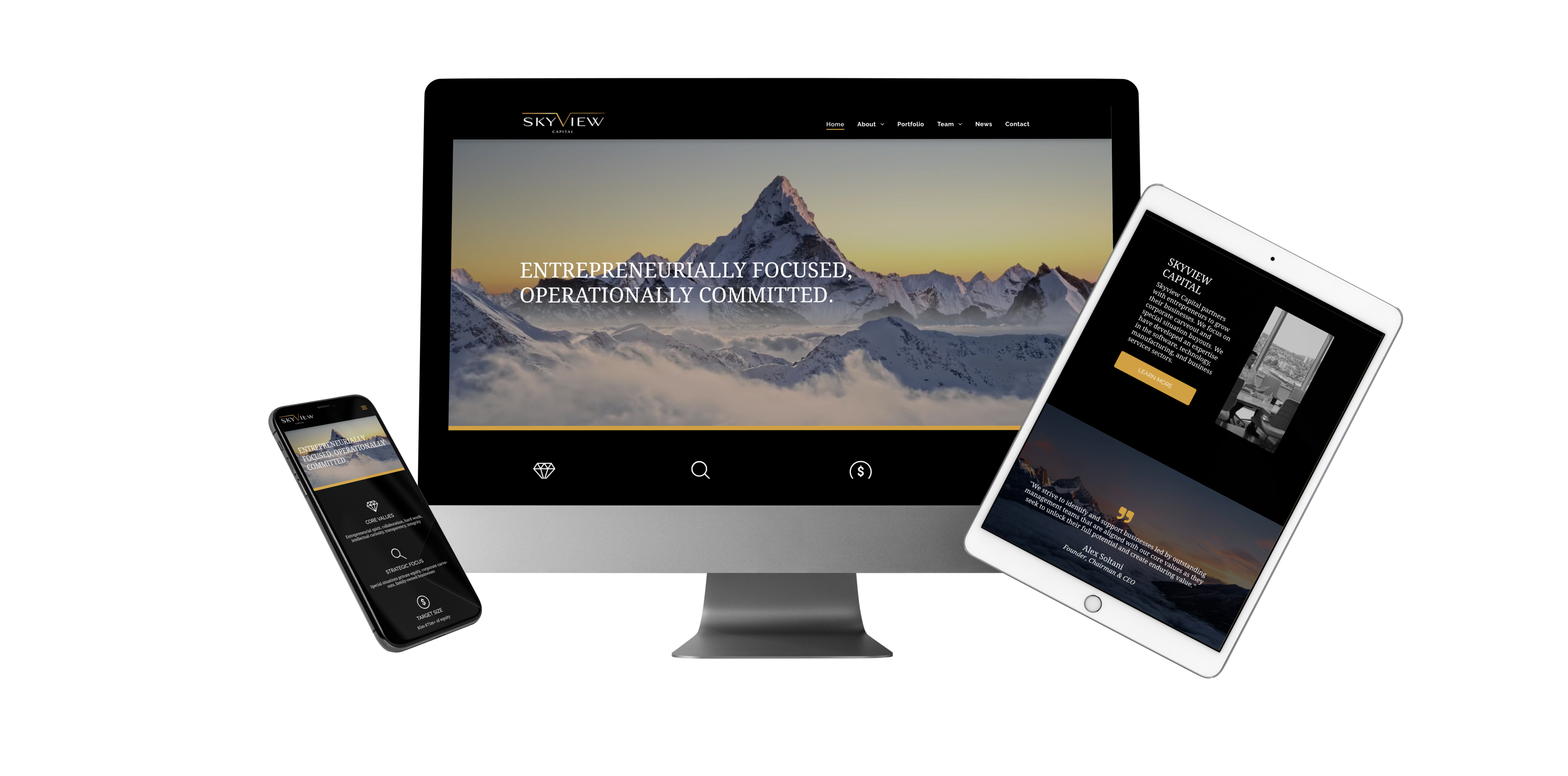 Skyview Capital's redesigned website reflects their stature in the investment industry, with a sophisticated and intuitive design that showcases their portfolio and investment philosophy.